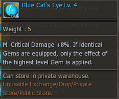 Daño Crítico M. +8%. Si se equipan gemas idénticas, solo se aplica el efecto de la gema de mayor nivel.